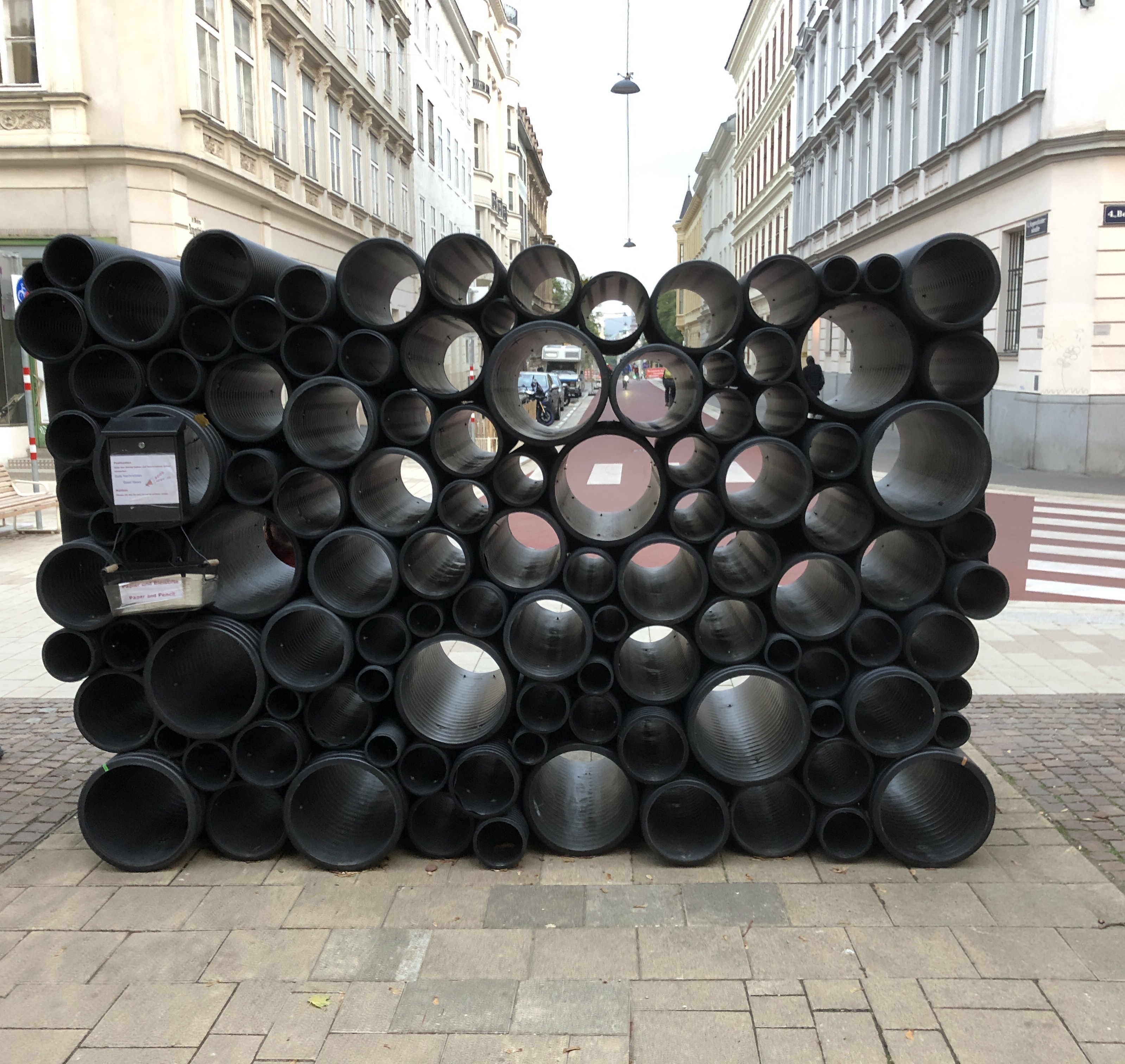 Seit 2021 steht ein Kunstobjekt (eine Rohrkonstruktion) regelmäßig zu unterschiedlichen Themen an unterschiedlichen Orten im Pfarrgebiet.
