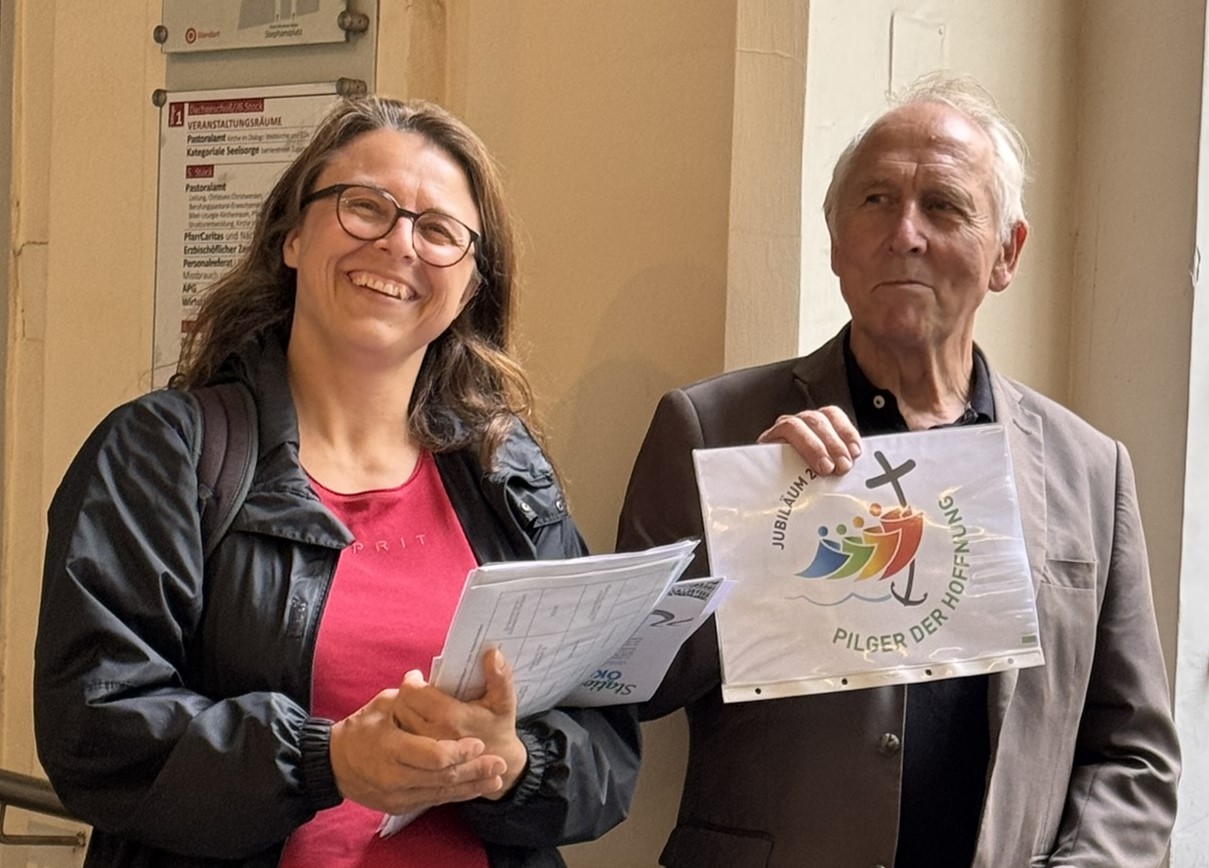 Anlässlich des „Heiligen Jahres 2025 zum Thema „Pilger:innen der Hoffnung“ lud das Welthaus Wien zum Öko-Fair-Sozialen Spaziergang in den 1. Bezirk. Eingeladen waren vor allem Interessierte, die den von Welthaus erstellten Behelf kennen lernen wollten, um die 2h-Aktion in ihren eigenen Pfarren durchzuführen. Die teilnehmenden Personen aus Niederösterreich (Hollabrunn, Poysdorf, Wr. Neustadt, Mödling, …) und Wien setzten sich zwei Stunden lang intensiv und kritisch mit den Themen Verkehr/Mobilität, Konsum und Soziales auseinander.