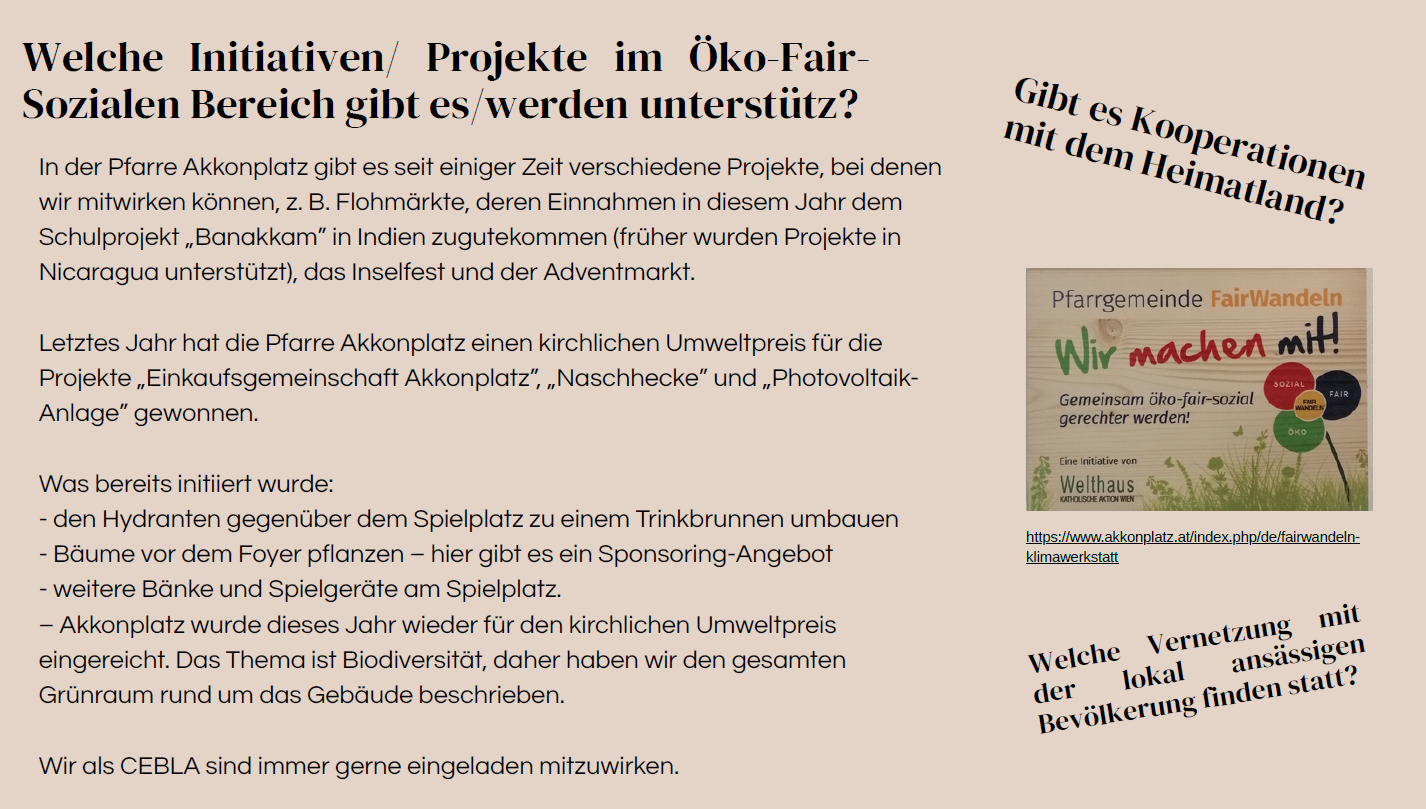 Lucy Mendez erzählte von der Basisgemeinde CEBLA und deren Aktivitäten am Akkonplatz.